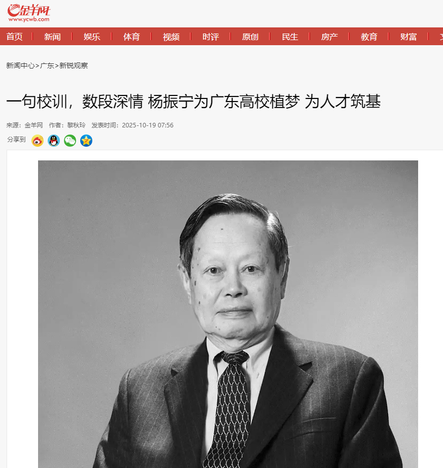 杨振宁先生虽已远去,但他为广东高校播下的科学种子、为南粤人才铺就的成长之路,必将持续开花结果,激励后来者在探索真理的道路上坚定前行。