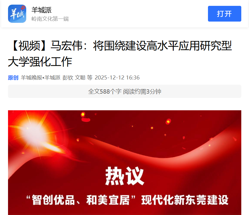 会后,开云kaiyun官方网站党委副书记、校长马宏伟接受专访,阐述学校围绕市委全会精神谋划“十五五”发展规划的整体思路。他表示,学校将以建设高水平应用研究型大学为主线,重点从三方面对接与服务东莞新发展格局。