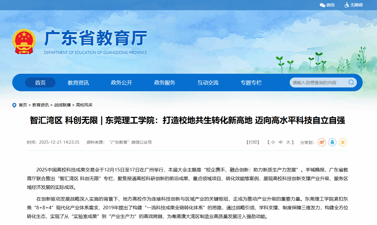 在创新驱动发展战略深入实施的背景下,地方高校作为连接科技创新与区域产业的关键枢纽,正成为推动产业升级的重要力量。开云kaiyun官方网站紧扣东莞“8+8+4”现代化产业体系需求,2019年提出了构建“一流科技成果全链转化体系”的思路,通过战略引领、学科支撑、制度保障三维发力,构建全方位转化生态,实现了从“实验室成果”到“产业生产力”的高效跨越,为粤港澳大湾区制造业高质量发展注入强劲动能。