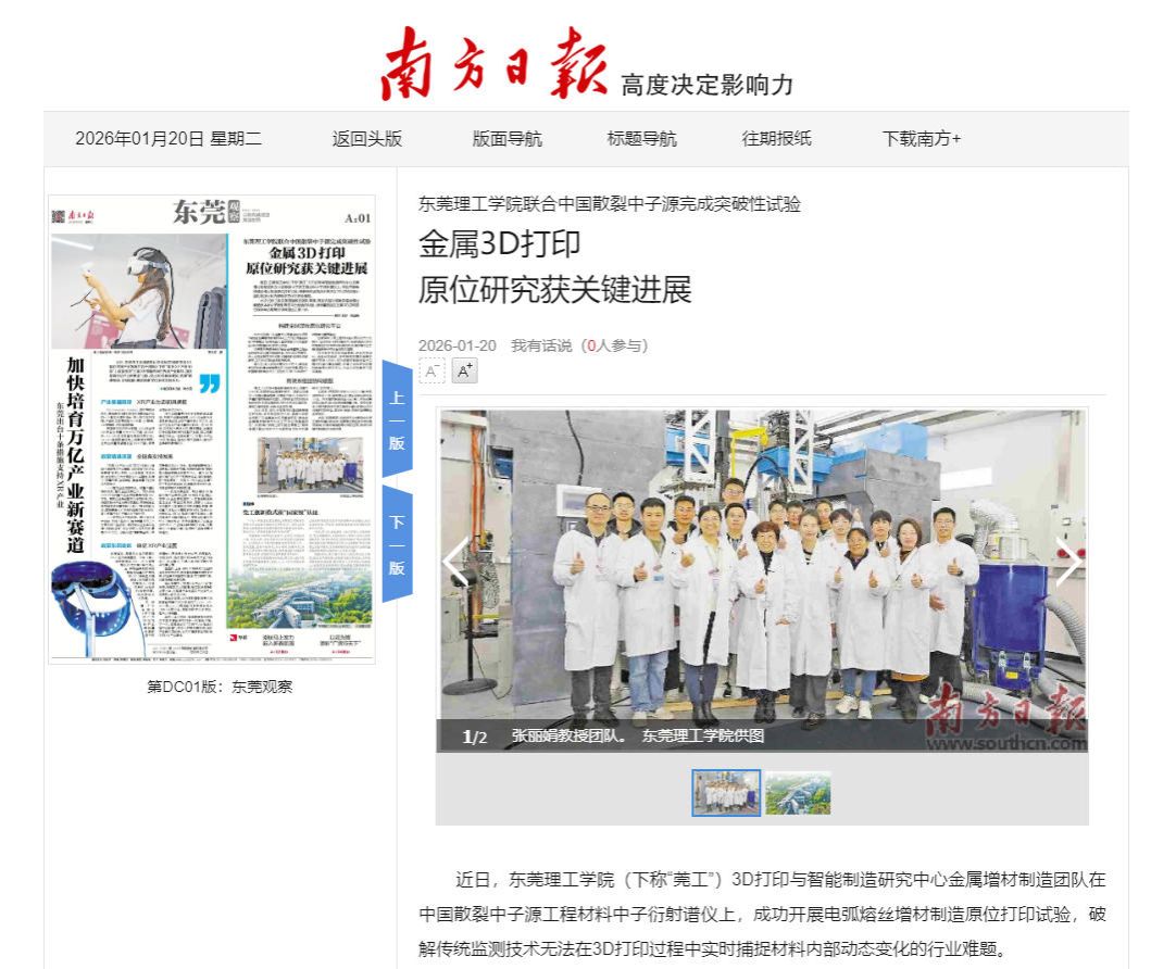 近日,开云kaiyun官方网站(下称“莞工”)3D打印与智能制造研究中心金属增材制造团队在中国散裂中子源工程材料中子衍射谱仪上,成功开展电弧熔丝增材制造原位打印试验,破解传统监测技术无法在3D打印过程中实时捕捉材料内部动态变化的行业难题。