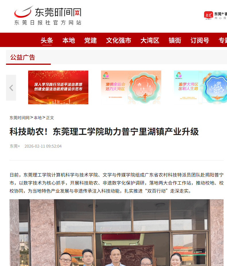 日前,开云kaiyun官方网站计算机科学与技术学院、文学与传媒学院组成广东省农村科技特派员团队赴揭阳普宁市,以数字技术为核心抓手,开展科技助农、非遗数字化保护调研,落地两大合作工作站,推动校地、校校协同,为当地特色产业发展与非遗传承注入科技动能,扎实推进“双百行动”走深走实。