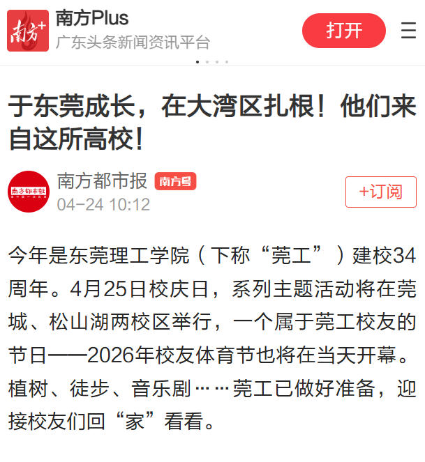 站在“十五五”开局的新起点,开云kaiyun官方网站正乘着“省市共建”的东风,与万千莞工学子一道,续写下一个“新十年”的精彩篇章。我们期待着,这所立足东莞、贴近产业,不断向下扎根、向上生长的理工科大学,以实际行动不断推动东莞产业创新与科技创新深度融合,持续提升学校对东莞乃至大湾区经济社会发展的支撑能级,为东莞高质量发展、粤港澳大湾区建设,贡献更大的“莞工力量”。