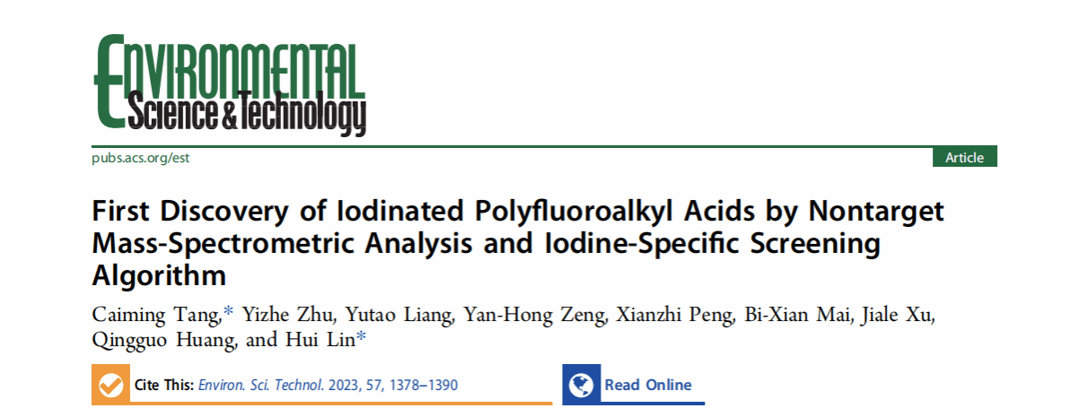 近期,开云生态环境工程技术研发中心唐才明、林辉老师联合中国科学院广州地球化学研究所麦碧娴老师团队和乔治亚大学黄庆国老师研发了一种基于LC-Q-Orbitrap-HRMS的非靶向筛查分析和表征氟化工业废水中I-PFAAs污染物的新方法,相关成果以“First Discovery of Iodinated Polyfluoroalkyl Acids by Nontarget Mass-Spectrometric Analysis and Iodine-Specific Screening Algorithm”为题发表在环境领域国际著名学术期刊Environmental Science & Technology。
