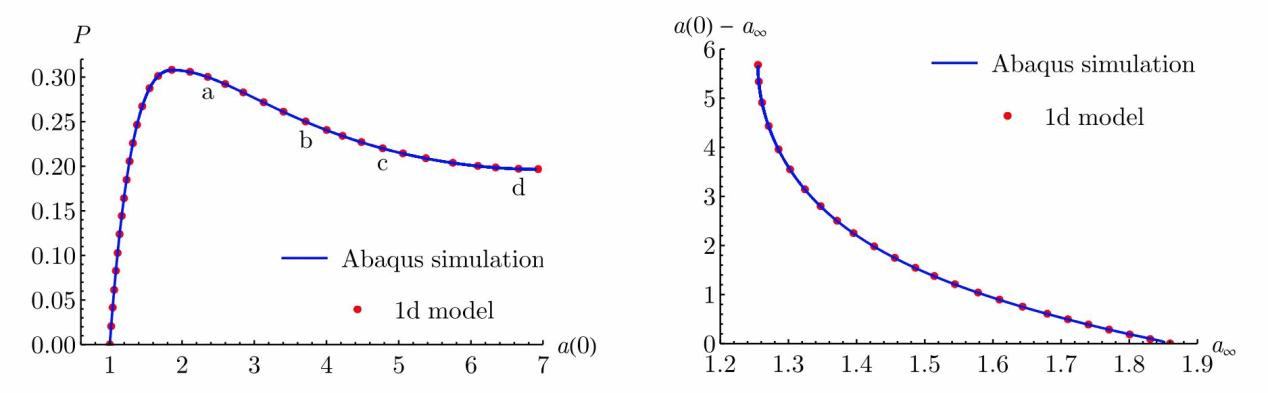 本研究基于Audoly和Hutchinson(JMPS 2016, 97, 68–91.)提出的降维方法,从三维有限应变理论出发,推导了用于描述有限壁厚超弹性充气圆管起鼓的一维模型。该一维模型使得利用简单数值方法,如有限差分法,来描述有限厚壁圆管的轴对称变形变得容易。与数值模拟结果的对比表明,对于起鼓问题,该一维模型能够非常准确地描述起鼓从起始、生长到扩展的整个过程。该一维模型为之后研究各向异性、电载荷以及破裂等效应提供了一个起点。