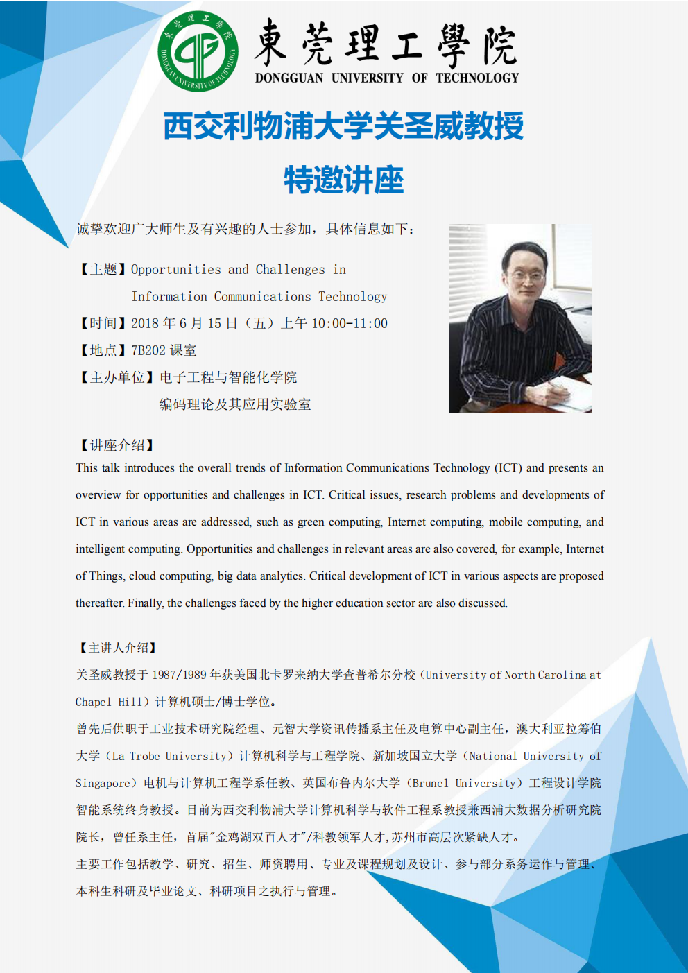 西交利物浦大学关圣威教授特邀讲座