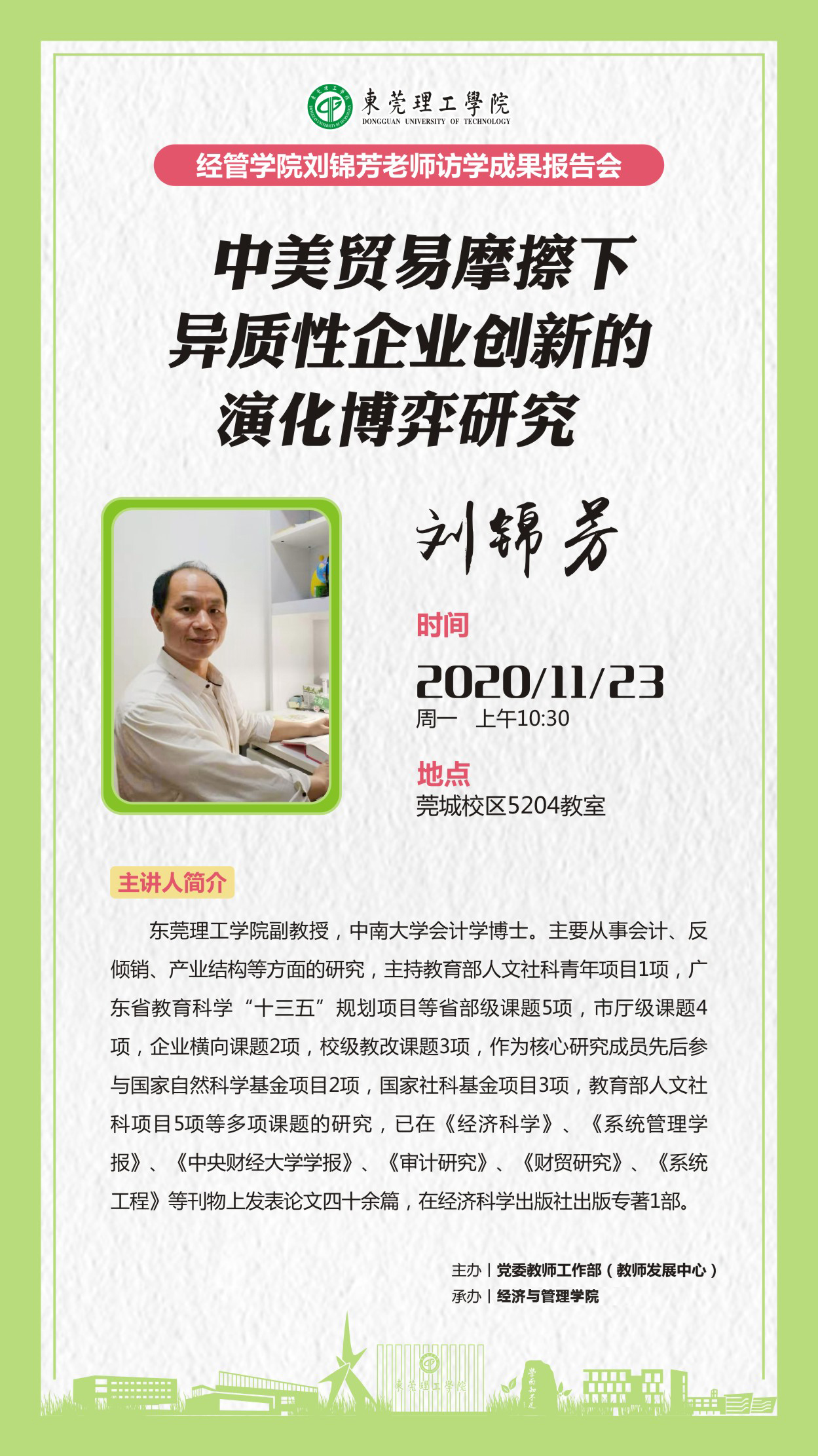 刘锦芳老师访学成果报告会:中美贸易摩擦下异质性企业创新的演化博弈研究
