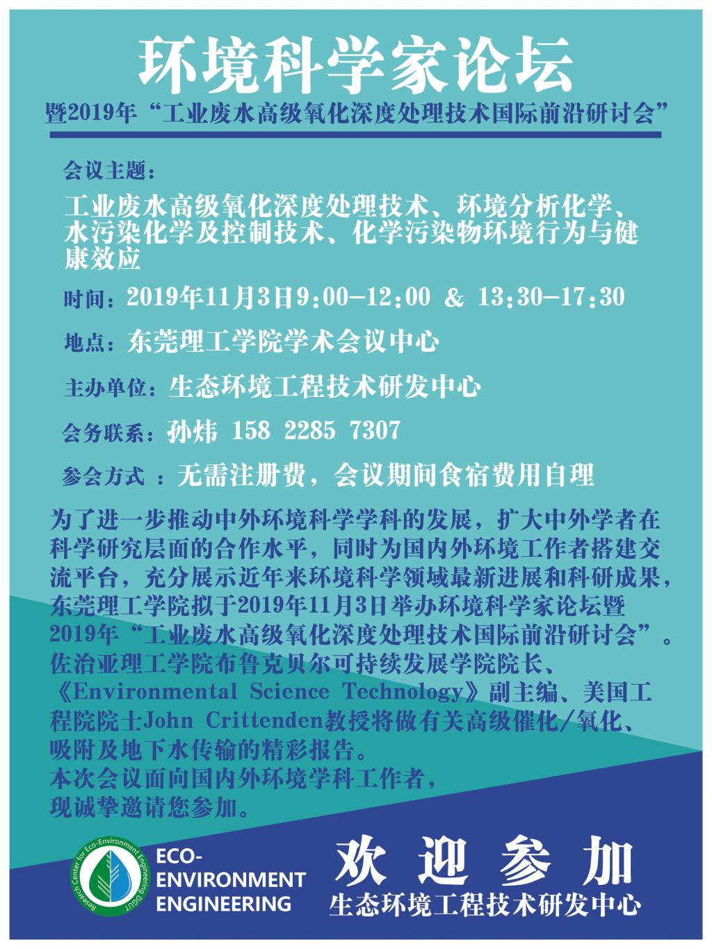 环境科学家论坛 暨2019年“工业废水高级氧化深度处理技术国际前沿研讨会”