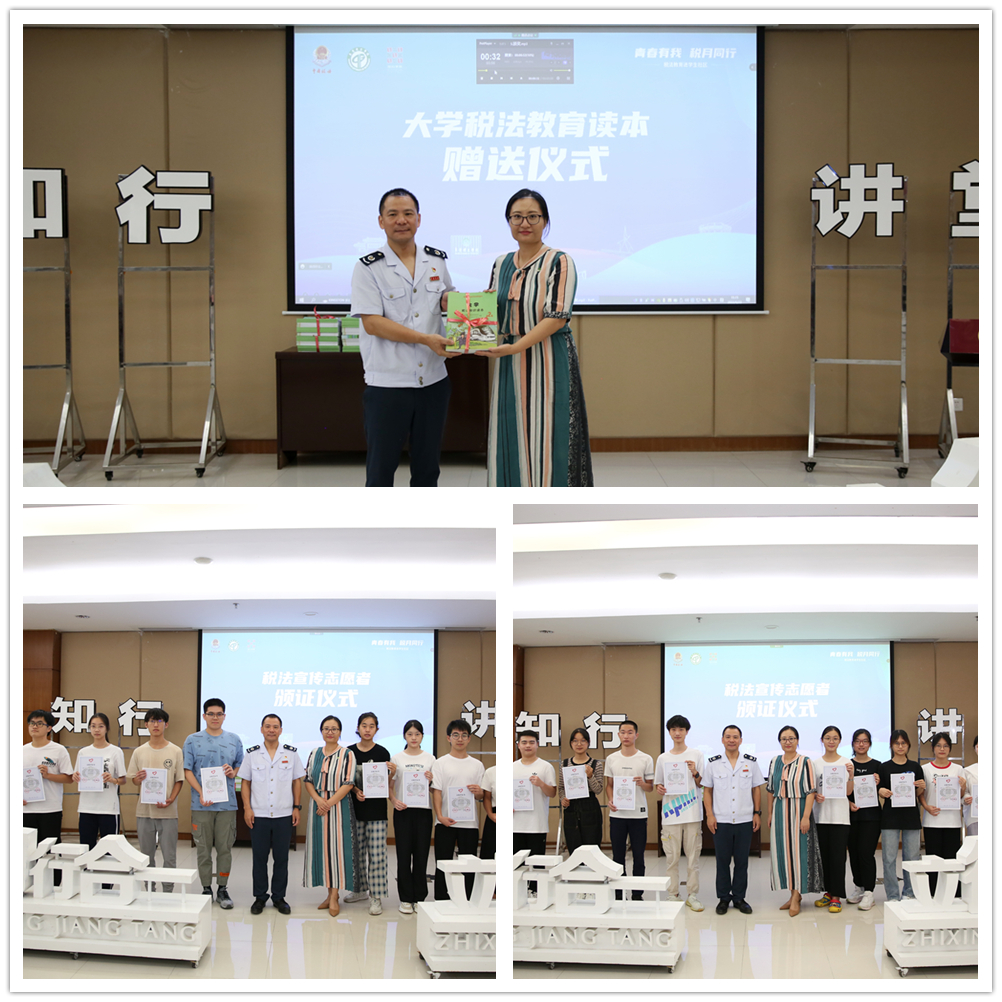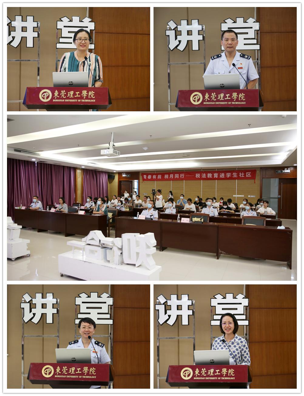6月23日下午,由学生社区知行学院、国家税务总局东莞市税务局稽查局和国家税务总局东莞松山湖高新技术产业开发区税务局联合举办的税法教育进学生社区活动,在开云会议中心举行。学生社区知行学院执行院长劳丹,国家税务总局东莞松山湖高新技术产业开发区税务局党委书记、局长陈柱江,国家税务总局东莞市税务局法制科副科长颜明、松山湖税务局相关人员、24名税法宣传学生志愿者及线上500名学生参加了活动。学生社区知行学院副院长许燕转主持讲堂。