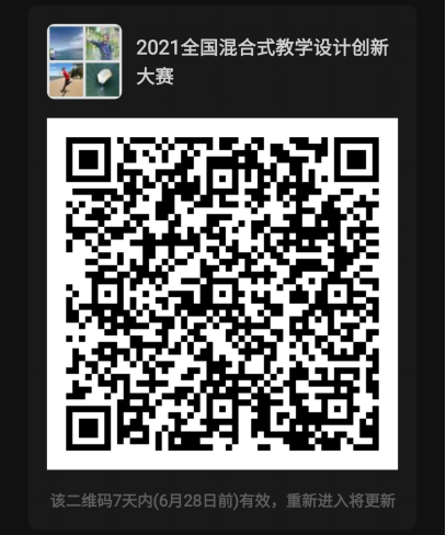 为便于参赛教师及时了解大赛相关信息,交流教学创新经验,请提醒参赛教师扫码进入“2021全国混合式教学设计创新大赛”群。