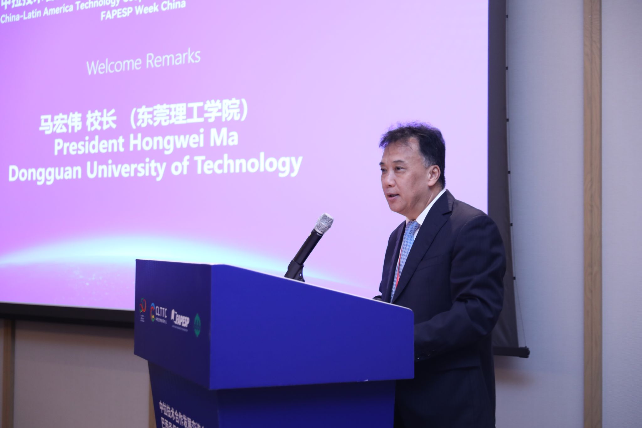 徐勇军向参会嘉宾介绍莞工近年来的发展成果,以及参与中国—拉美和加勒比国家技术转移中心建设所取得的成效。他表示,本次ESG与绿色低碳论坛,汇聚中巴双方智慧,将为学校相关学科方向师生提供开阔学术视野、把握领域新动态的宝贵机会。期待通过这次论坛,深化中拉科技创新合作,促进学术人才交流,分享实践经验、探讨发展路径,推动绿色低碳发展理念和实践在全球范围内的普及和应用。