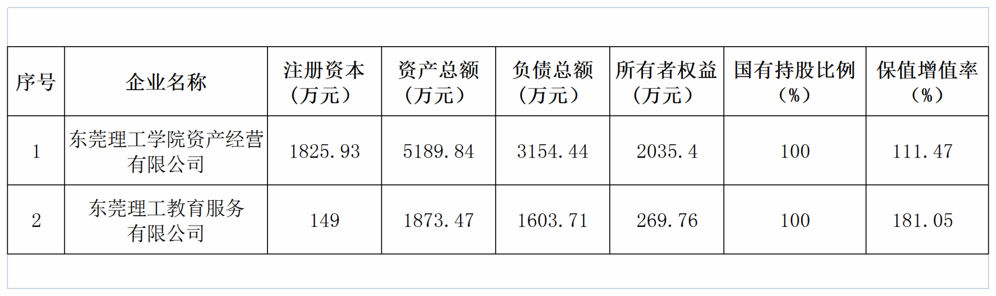 校办企业资产、负债及国有资产增值保值等信息公开一览表