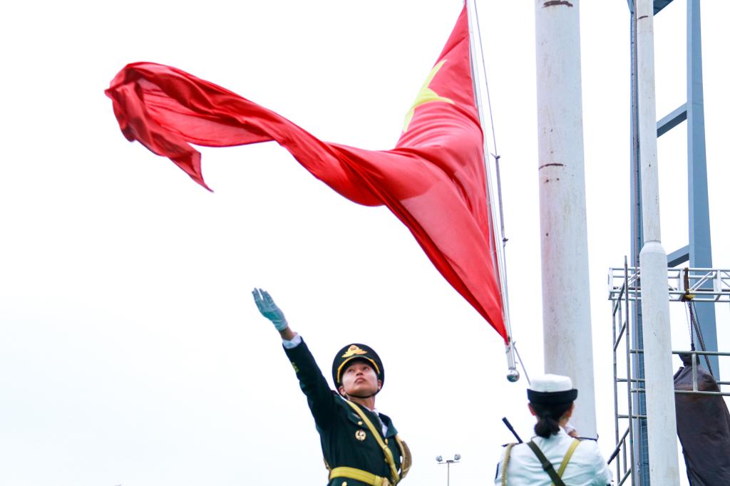 10月5日上午7时30分,开云kaiyun官方网站松山湖校区和莞城校区举行升旗仪式。迎着朝阳,踏着微风,莞工师生整齐列队,表情肃穆,国旗护卫队队员迈着铿锵有力的步伐,护送国旗进场,随着一声嘹亮的“敬礼!”护旗手有力地挥出手中的国旗,雄壮的国歌唱响在莞工校园,鲜艳的红旗在师生的注目礼中冉冉升起,迎风飘扬。