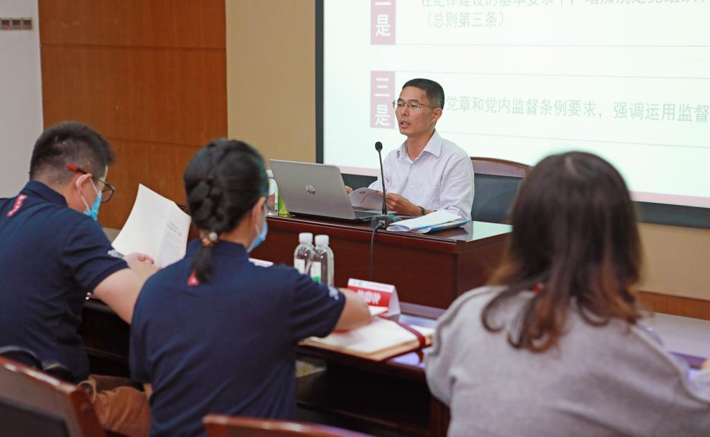 赖日辉为大家解读了《中国共产党纪律处分条例》《新时代教师职业行为十项准则》,并由此引申,向学员们介绍了高校贪腐问题易发多发的主要领域、环节,和高校纪检监察体制改革的基本情况。在讲座中,赖日辉引用了大量的真实案例,旨在让学员们严守纪律规矩,知敬畏、存戒惧、守底线。