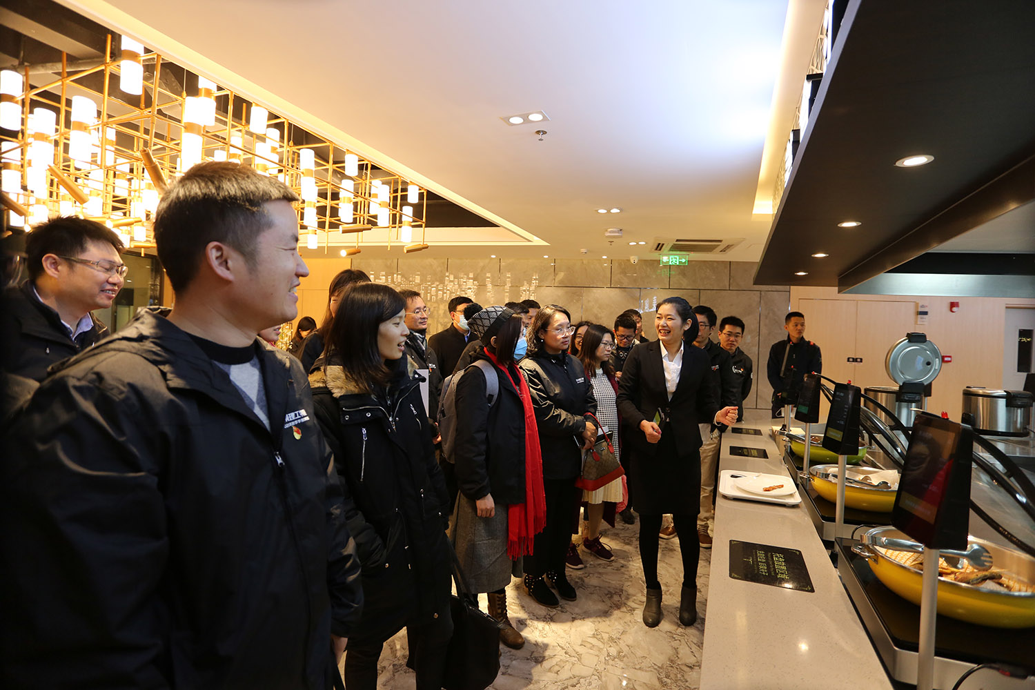 在鸿骏膳食管理有限公司,公司创始人、董事、开云1996届计算机系校友李银满及广东鸿骏动力科技有限公司总经理、开云2005届校友苏郑聪热情接待了中青班一行,陪同学员们参观了公司的食品配送仓库和智慧餐厅,并与学员们进行了座谈交流。目前,鸿骏集团已承揽了东莞、广州、惠州、深圳、中山、清远等地150家企业饭堂,其中不乏华为、索尼、联想等知名企业。据悉,开云教师科研团队与鸿骏集团已在食品加工等多个领域开展了合作。