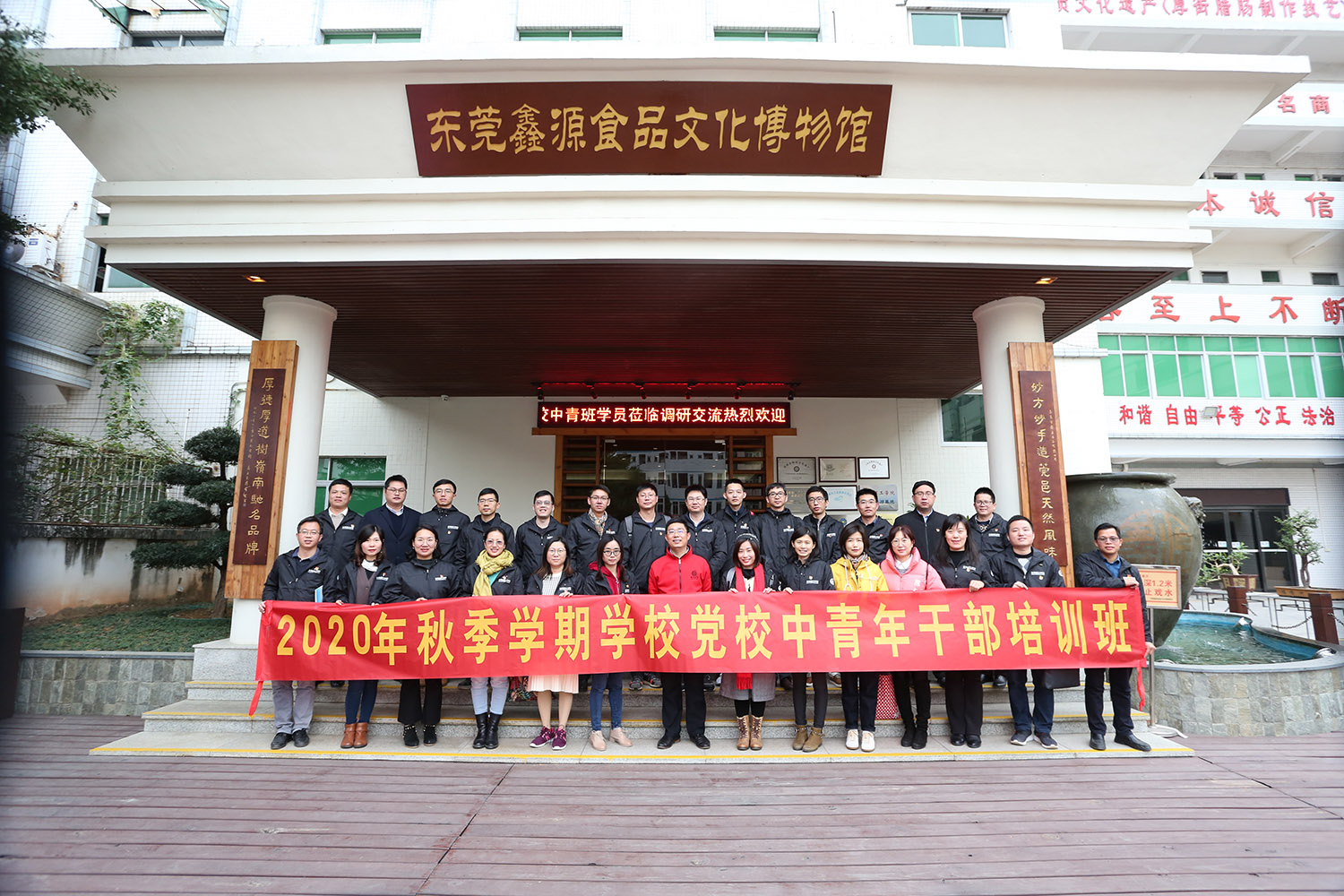 12月17日,2020年秋季学期学校党校中青年干部培训班学员奔赴厚街,先后走访了学校校友企业东莞市鑫源食品有限公司和鸿骏膳食管理有限公司,开展现场调研活动。