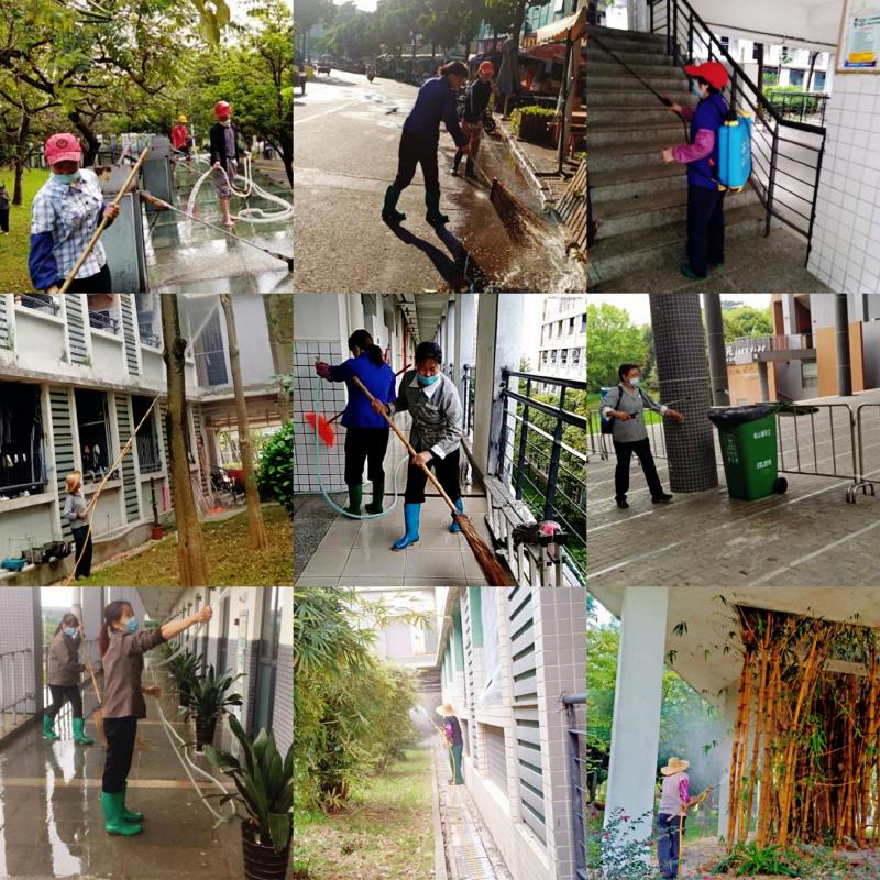 开云学生即将分批分期返校,疫情防控是重点,开展好爱国卫生运动是关键,连日来后勤管理办公室不断提高政治站位、毫不松懈,始终贯彻落实《通风、消毒制度》、《环境卫生检查通报制度》,全面做好两校区行政楼、图书馆、经管楼、机械楼、教室、学生宿舍等公共场所及电梯、楼梯、课室讲台桌椅、扶手等公共设施的日常清洁、消毒、通风等工作,成立专项小组分片区、分环节做好管理、检查和监督;按指引正确处置防疫物资垃圾及生活垃圾;积极联系专业灭四害公司对校园公共场所进行“四害灭杀”,针对较隐蔽区域如后山、饭堂后门等地方加强消杀力度,较大程度地减少了蚊虫滋生;针对隔离区等重点防疫区加派作业力量,强化消毒、清洁力度;结合学校有关整改要求,对校内学生公寓7栋楼下的违章建筑中国邮政报刊亭作撤场、拆除处理。