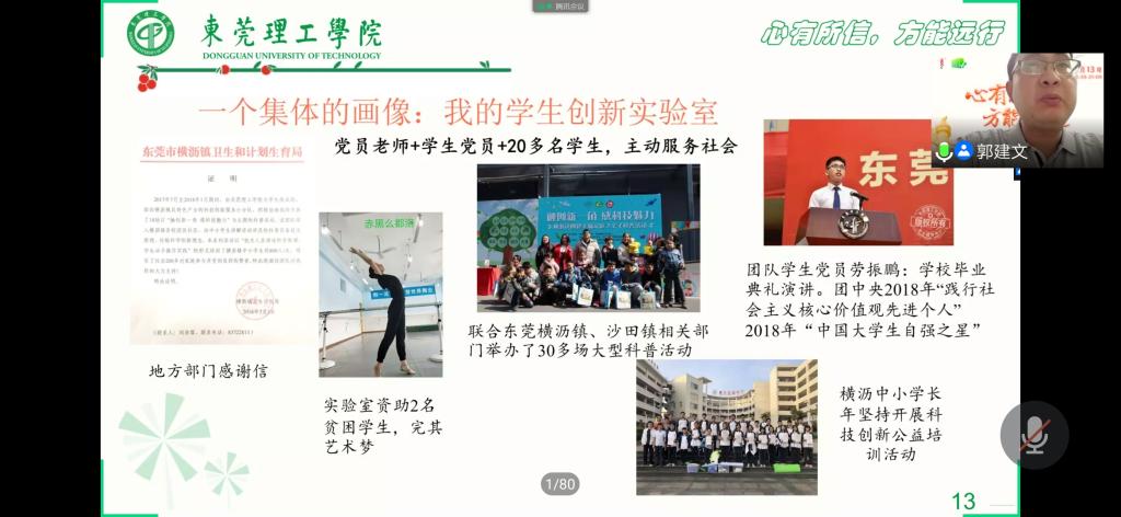 机械工程学院副院长、AutoGo学生创新实验室指导老师郭建文,全国优秀教师、“暖风”志愿服务队指导老师诸小妮,在韶关仁化县红山镇基层一线工作的2018届校友张焯分别从自己的创新经历、社会实践经历、基层工作经历出发,围绕《习近平与大学生朋友们》系列专题报道与同学们进行了分享,并和创新创业学生代表、社会实践学生代表、“三支一扶”学生代表进行了热烈的交流和讨论。