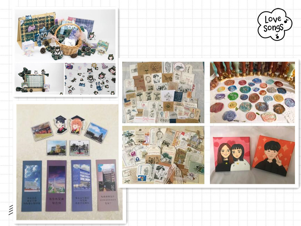 在本次创意市集活动中,文化产业管理系同学结合所学的设计、营销等课程,把专业知识、生活思考、审美经验、对故乡、母校的情感融为一体,以“为家乡带货”“云毕业”“特色自选”等三个主题进行创意构思与产品设计,并试水通过网络平台进行线上路演、售卖。通过本次实践活动,同学们积极将创意转化为创造,以“文化”为纸,以“创意”为笔,营造出一个文化多元化交流的校园环境,共同谱写了文产系创意市集的新篇章。