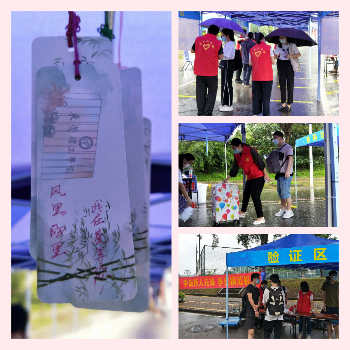 “风里雨里,我在等你”,真实地反映了志愿者们大雨中的坚守,饱含着对学生的真挚情感。风雨中,志愿者的红马甲为校园增添了一抹亮丽和热烈,温暖了人心。