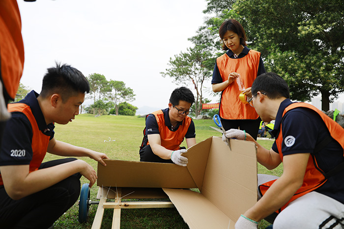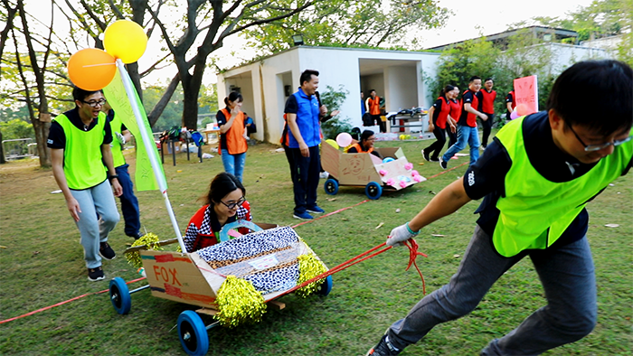 在专业教练带领下,学员们热身后便以分组形式,依次完成了“报数挑战”“F1赛车制作”“赛车竞速”和“CS对抗”等素质拓展项目。学员们在项目中分工合作、各展所长,充分激发了学员创新精神,创造性高质量地完成了各项挑战任务。丰富有趣的拓展项目,让学员之间快速融合,促进学员之间的交流和成长,快速拉近了彼此的关系,也对学员们的团队配合形成考验,对初步组建的班级实现有效破冰,增强了团队凝聚力,为日后的各项学习调研活动打好基础。