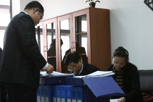督导组在查看我院心理辅导工作资料和档案