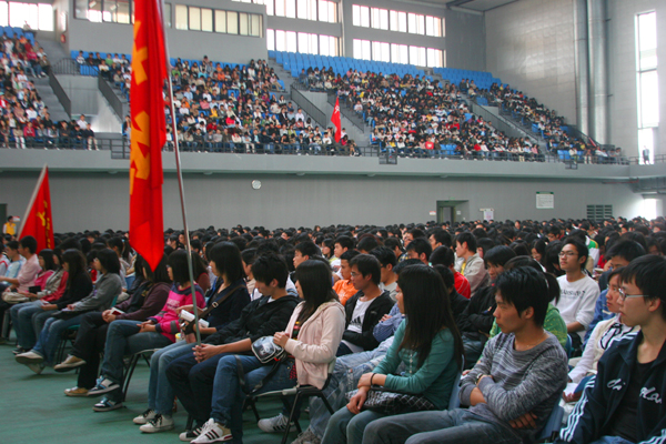 3月6日下午,我院在体育馆召开全院学生干部迎评动员大会。院党委书记周致纳,院党委副书记、院长杨晓西,党委副书记王江水,教务长林养素,学生处、团委相关负责人等出席了大会。会议由王江水主持。