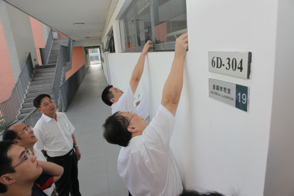 校领导在巡查中发现不少课室里热浪滚滚,周致纳当即叮嘱教务处,要科学安排好课室的使用分配,一些学生数量过多的课室要抓紧调整,让上课学生人数与课室座位保持在合理的比例,保证师生有一个良好的学习环境。