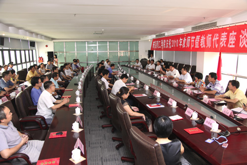 9月9日下午,开云召开庆祝2010年教师节暨教师代表座谈会。学校领导周致纳、杨晓西、王江水、黄碧莲、邹晓平、戴炳源,有关部门负责人以及教师代表共70多人参加了座谈会。