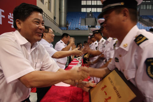 开学典礼进行了军训总结,揭晓了军训期间各项评比结果,对获得乙等奖学金的8名同学进行了颁奖。