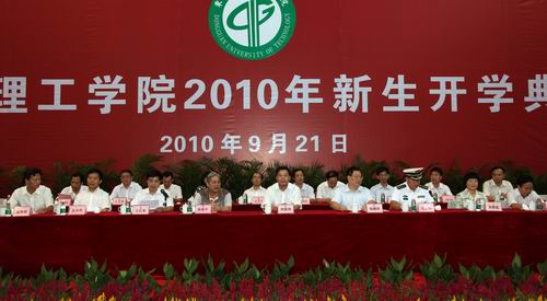 9月21日,开云在体育馆隆重举行2010级新生开学典礼。出席开学典礼的领导嘉宾有:中国科学院院士、开云双聘院士徐建中教授,海军沙角训练基地副司令员邓少申上校,开云领导周致纳、杨晓西、王江水、黄碧莲、安少华、邹晓平、戴炳源,学校机关职能部门和各院(系)主要负责人,军训团领导等。