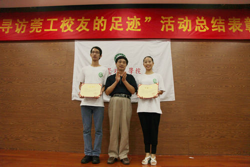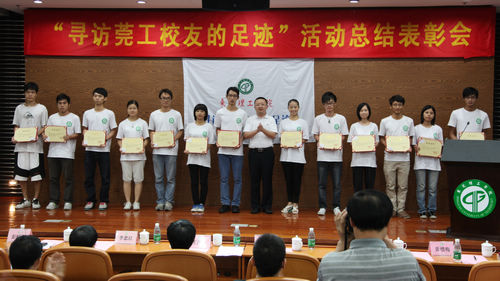 会上,王江水副书记等领导为在本次“寻访莞工校友的足迹”活动中突出表现的一批个人及团队颁奖。共有13个分队代表被评为“寻访莞工校友足迹”活动积极分子;获得“寻访莞工校友的足迹”作品成果(包括DV制作、照片拍摄和文章)奖一等奖的是师范学院队,二等奖是工商管理学院队、校学生会大学生报社队,三等奖是文学院队、外语系队和计算机学院队;师范学院队和机械工程学院队被评为最佳组织团队;电子工程学院队、化学与环境工程学院队和经贸系队被评为优秀寻访团队。
