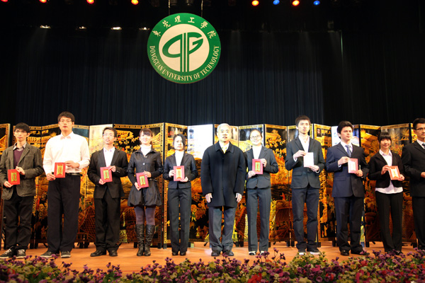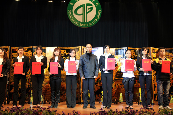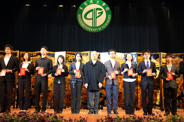 部分“东莞外商协会”奖学金获奖同学与颁奖嘉宾合影留念