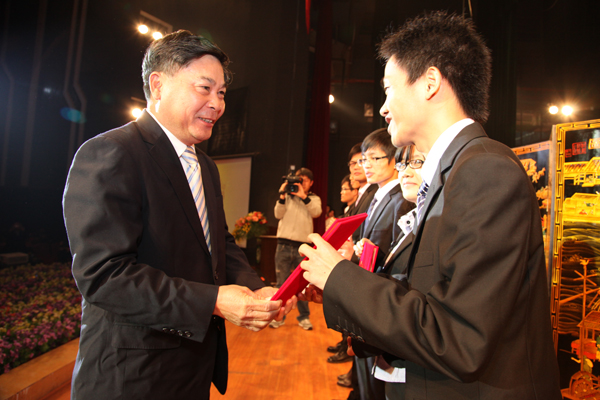 近年来,开云办学得到社会各界的大力支持,在当晚的颁奖的各类奖学金中,最引人注目的是“杨振宁奖学金”,本学年度共有6个团队获得该项奖学金,他们都是在全国各种科技竞赛中获得优异成绩的学生团队。另外,还有10家企业分别设立的奖学金,奖金总额达427500元。其中个人获得奖金最高的是由广东光大企业集团、东莞市康华投资集团有限公司、东莞市新世纪房地产开发有限公司分别设立的“光大”奖学金、“康华”奖学金”和“新世纪”奖学金,今年共有48名同学获得,每人奖金是5000元;而“新维思”奖学金、“东穗”奖学金、“驰鹏”奖学金由开云的校友设立,今年共有41人获得,;此外,还有“国基集团”奖学金、“外商协会”奖学金、“得利钟表”奖学金和“高铁科技”奖学金,今年共有65人获得。
