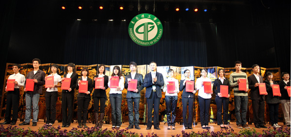 部分优秀大学生标兵、“新世纪”奖学金获奖同学与颁奖嘉宾合影留念