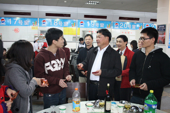 下午6时许,第一学生食堂内灯火璀璨、暖意融融。团年饭前,校领导向留校学生一一派送新年利是,九桌盛宴让整个食堂热闹非凡。周致纳代表学校党委、行政发表了热情洋溢的新春祝词,向全体留校学生表示亲切慰问。席间,校领导来到每个餐桌前,亲切询问留校学生的学习、生活情况,并与同学们一一举杯共饮。殷殷寄语、声声祝福,暖流溢满除夕。
