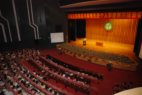 报告会上,陈广兴等四位身残志坚的自强模范与同学们分享了他们悲惨却自强不息,顽强拼搏的人生经历,鼓励在座同学要勇敢面对挫折,并努力克服。先进个人叶翠莲与同学们分享了她扶残助残的感人经历。现场观众屏息静听,无不为他们的感人事迹所折服,并报以热烈的掌声。