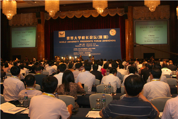8月13—14日以“21世纪大学的新使命与人才培养”为主题的世界大学校长论坛在深圳举行,校长杨晓西教授应邀出席了该论坛。来自68个国家和地区的163位大学校长站在经济全球化和教育国际化的战略高度,围绕“打造21世界的国际化大学”、“高等教育到底要怎样国际化”等热点议题,从关注世界高等教育发展趋势和国家、地区、大学发展面临的现实问题入手,紧紧围绕主题就高等教育国际化人才培养、提高大学生适应经济社会发展需求的能力、大学体育与国际实业和创新精神的培养、绿色大学建设等内容展开了深入的研讨。大家充分认识到,在经济全球化背景下,为增强国际竞争力,国际化人才培养成为各国政府和高等院校的首要任务;培养适应经济社会发展需求的人才是彰显高等教育办学质量的重要标志;创新能力是大学的灵魂,创业能力不仅已经成为企业招收人才的重要标准,而且越来越成为大学的培养目标;建设绿色大学,促进大学可持续发展。