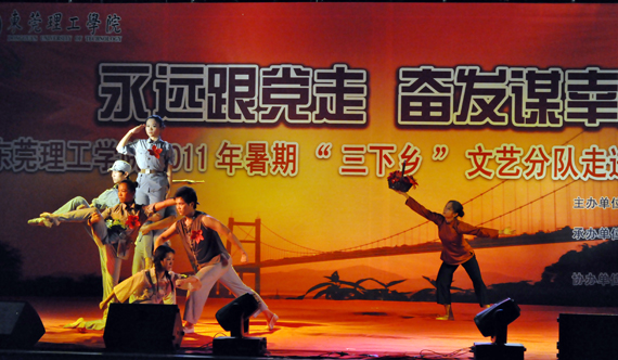艺术团的同学们在表演上精益求精,在晚会正式开始之前,他们尽心尽力,做足准备,顶着烈日不断地走台、彩排。艺术团成员黄家漆同学表示:“虽然很辛苦,但既然我们走出来,就要真心实意地表演,把最好的献给群众,让村民们感受到我们的诚意、认可我们的形象。”