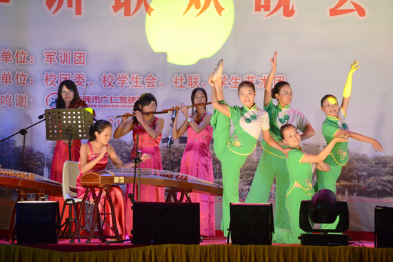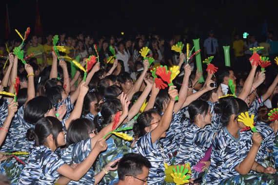 据了解,这个军训联欢晚会是本月14日定下的方案,新生们得知这个消息后,白天接受军事训练,晚上抓紧时间排练。虽然只是短短一个星期的排练,但是他们的表演获得了师生们的赞许与认可。