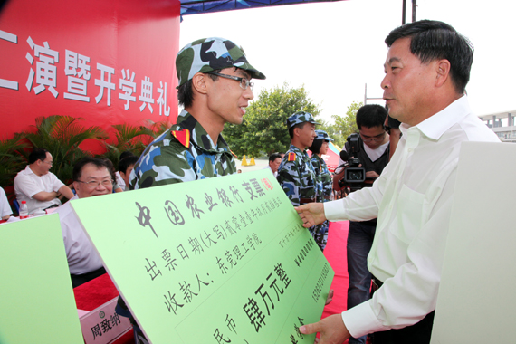 杨晓西校长向新生颁发乙等奖学金。张友炳/摄
