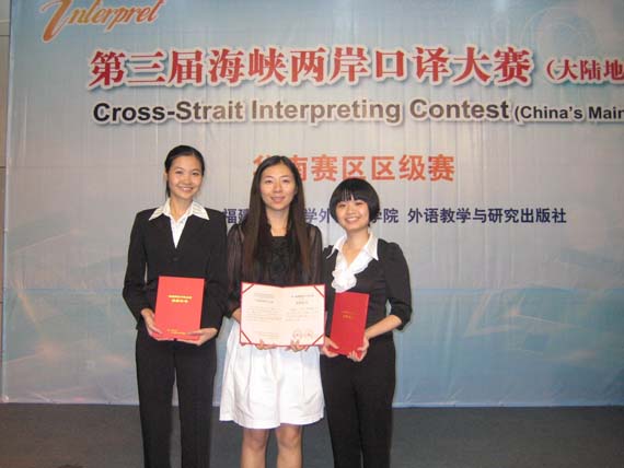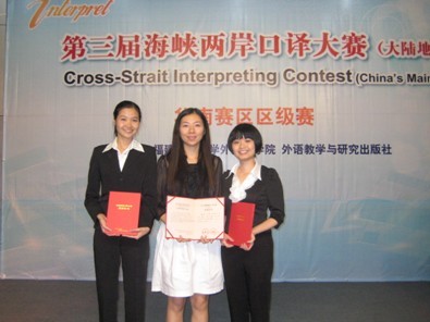 10月15日,第三届海峡两岸口译大赛华南赛区比赛在福建师范大学举行。开云口译项目指导老师刘瑾带队,外语系2008级李晶琳、李明姣和2009级尹瑞尧3位同学参加了比赛。其中李晶琳、尹瑞尧表现出色,荣获了第三届海峡两岸口译大赛华南赛区优胜奖。