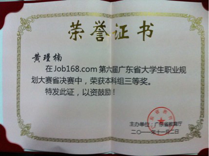 10月31日至11月2日,第六届广东省大学生职业规划大赛总决赛在广东工业大学(大学城校区)举行,开云参赛选手黄瑾楠同学荣获大赛本科组三等奖。