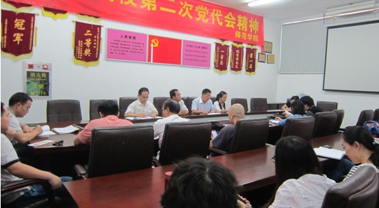 10月18日,师范学院组织全院教职工学习学校第二次党代会精神。