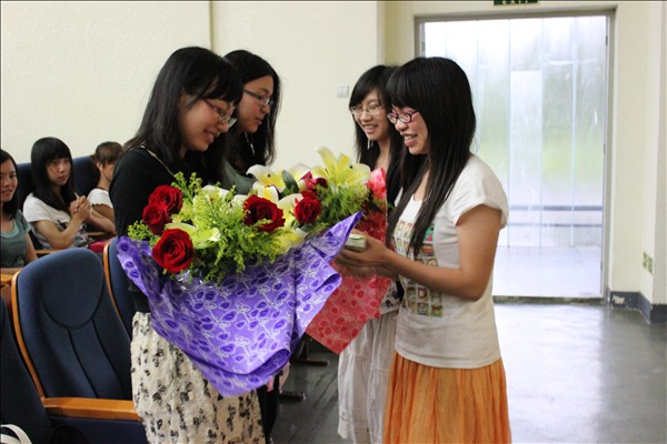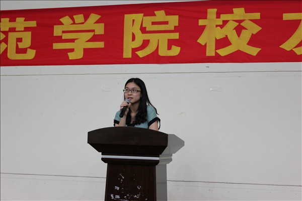 吴嘉雯用苏格拉底坚持甩手的故事开始了她的交流内容,她认为:“成功并不难,贵在坚持”。其后讲述了自己大学的经历,告诉各位学弟学妹要尽早发现自己的不足,且不要害怕与别人竞争,最重要的是摆正心态。而陈丽婷则向同学们讲述了教师这一职业的现状,她认为这一职业充满了挑战也充满了乐趣,建议同学们珍惜大学四年学习时间,找到自己喜欢的职业,实现自己的理想。
