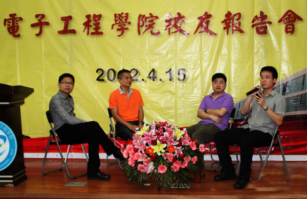 电子工程学院校友李雪标、江浩然、房志坚、吴铭斌四位校友分别与该学院400余名在校生进行了交流。