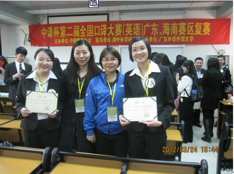3月24日,中译杯第二届全国口译大赛广东、海南赛区复赛在广东外语外贸大学高级翻译学院举行,开云口译项目指导老师刘瑾带领其口译项目组成员尹瑞尧和李明姣参加了这次规模宏大的口译大赛,外语系陈玉珍老师也观摩了此次比赛。尹瑞尧和李明姣在这次口译大赛中表现出色,尹瑞尧荣获了中译杯第二届全国口译大赛广东、海南赛区复赛二等奖,成功晋级到下一轮华南赛区的决赛,李明姣荣获了中译杯第二届全国口译大赛广东、海南赛区复赛三等奖,这是开云有史以来在省级口译大赛中取得的最好成绩。