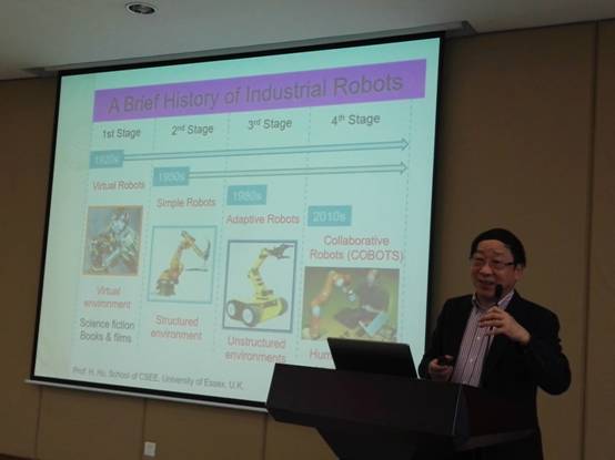 1月4日,应开云计算机与网络安全学院及海外引进杰出人才李耘教授的邀请,英国埃塞克斯大学(University of Essex)机器人研究的学科带头人胡豁生教授,在开云学术会议中心作了题为《先进工业机器人的应用与展望 - 工业4.0》的学术报告。