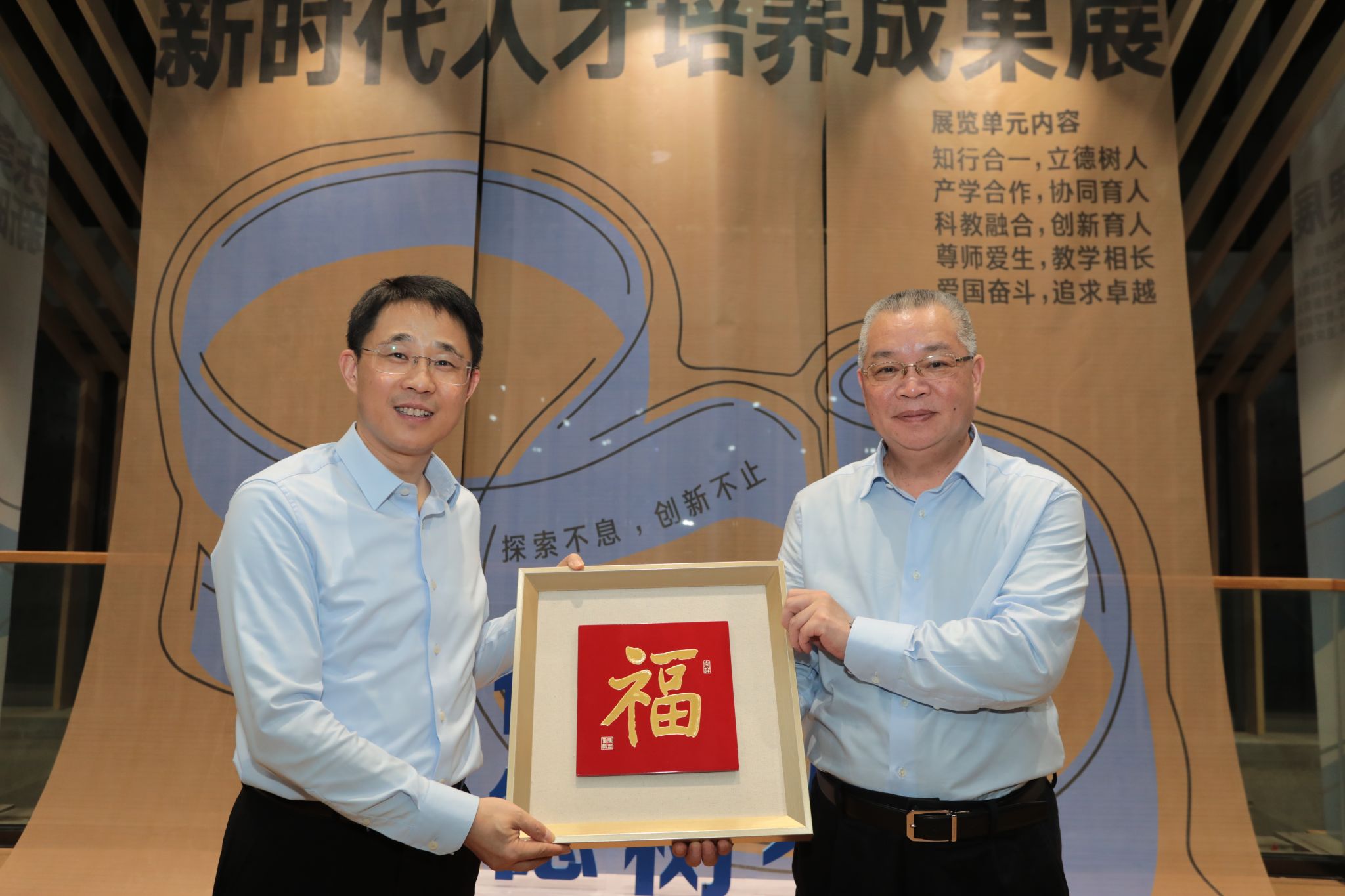 成洪波为叶世满一行介绍了学校改革发展情况,并代表学校和闽江学院互赠纪念品。马宏伟围绕学校人才培养以及现代产业学院建设、卓越工程师产教联合培养行动等重点工作进行了详细讲解。