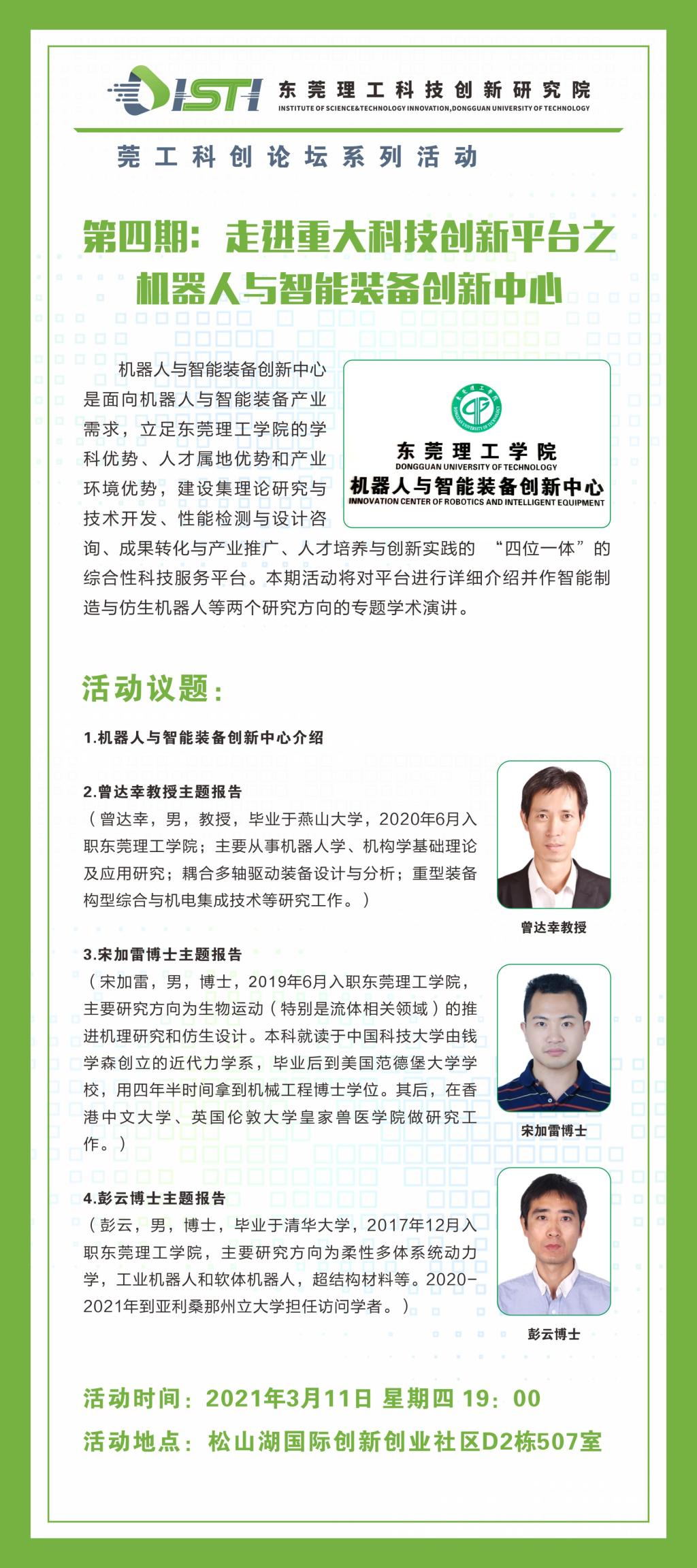 莞工科创论坛|第四期:走进重大科技创新平台之机器人与智能装备创新中心