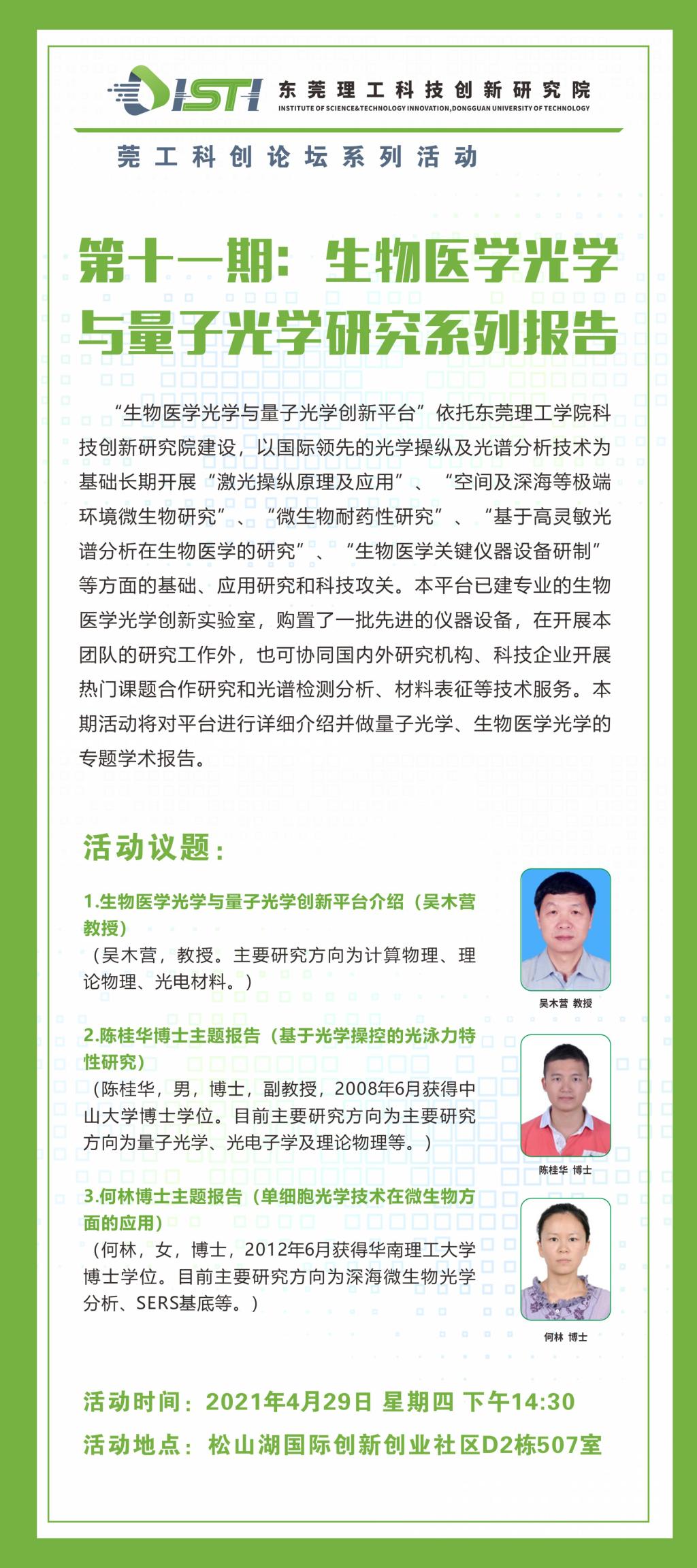 莞工科创论坛|第十一期:生物医学光学与量子光学研究系列报告